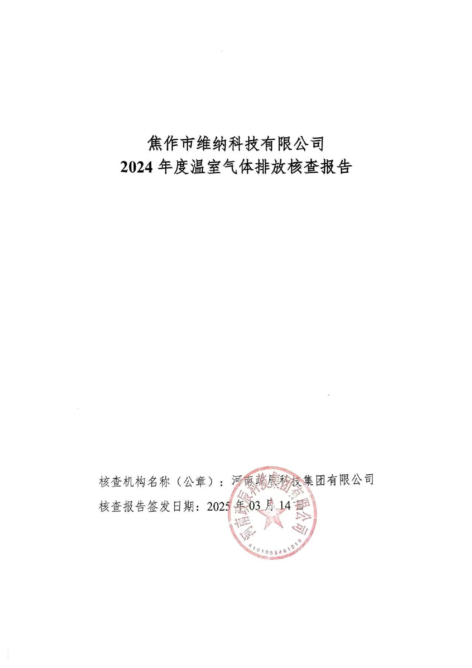 焦作市維納科技有限公司-2024年碳核查報告